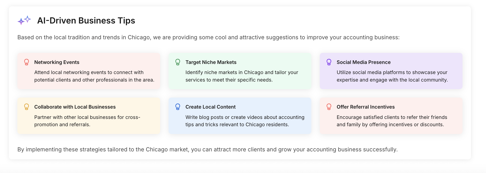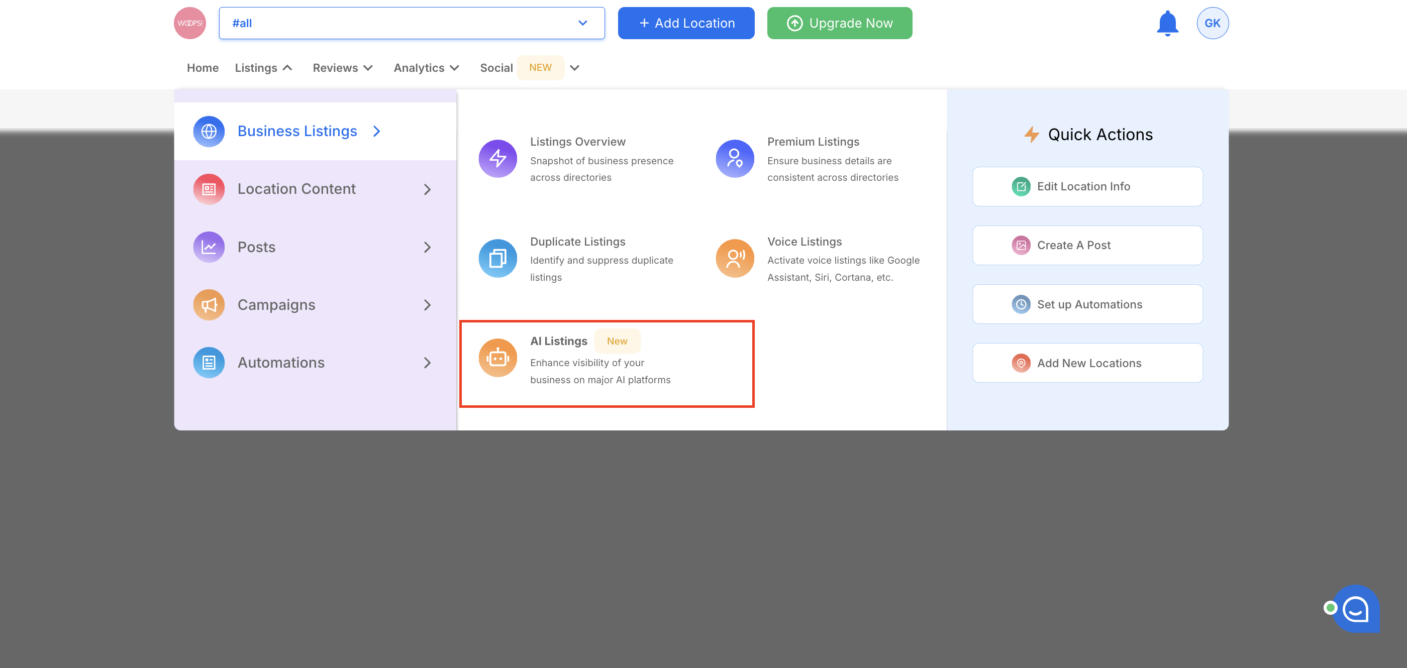 The AI Listings feature syncs a user’s business location information from their dashboard across supported AI sites - OpenAI, Google Gemini, Perplexity, Microsoft Copilot, Intellychat, and Myndmeld.