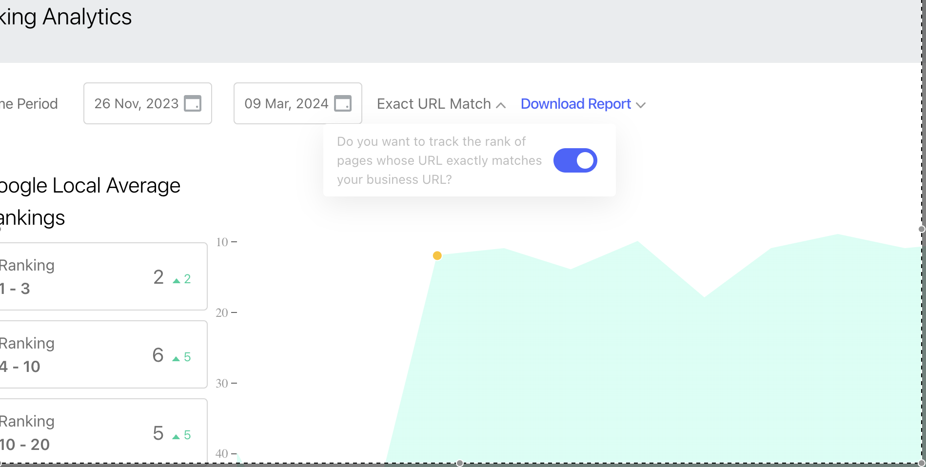 Keyword rankings are determined through a combination of search engine crawls for your business URL. The Exact Match option enables rank tracking for specific web pages.