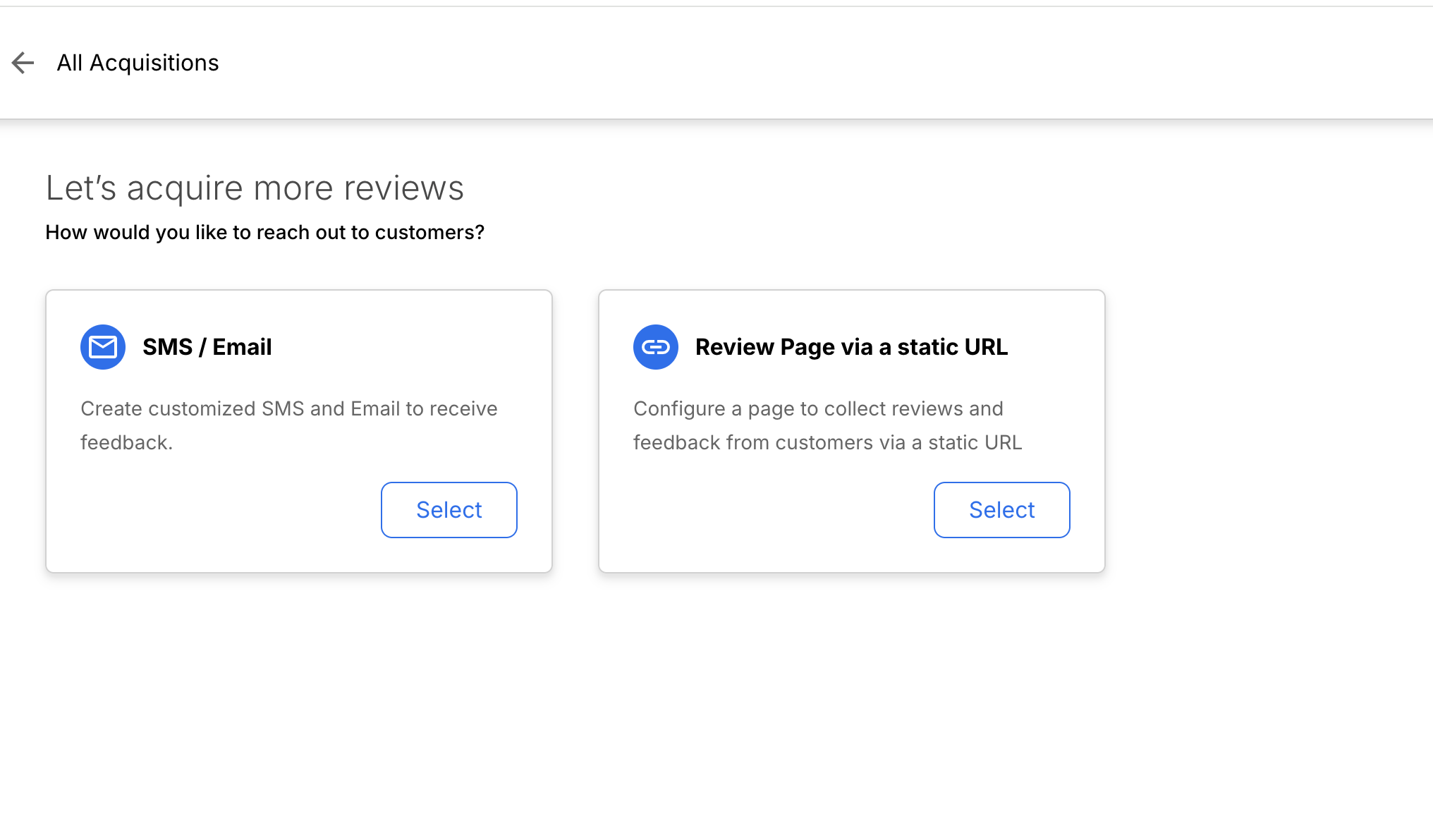 Step 5: Choose ‘SMS/Email’ option in the ‘Let’s acquire more reviews’ screen