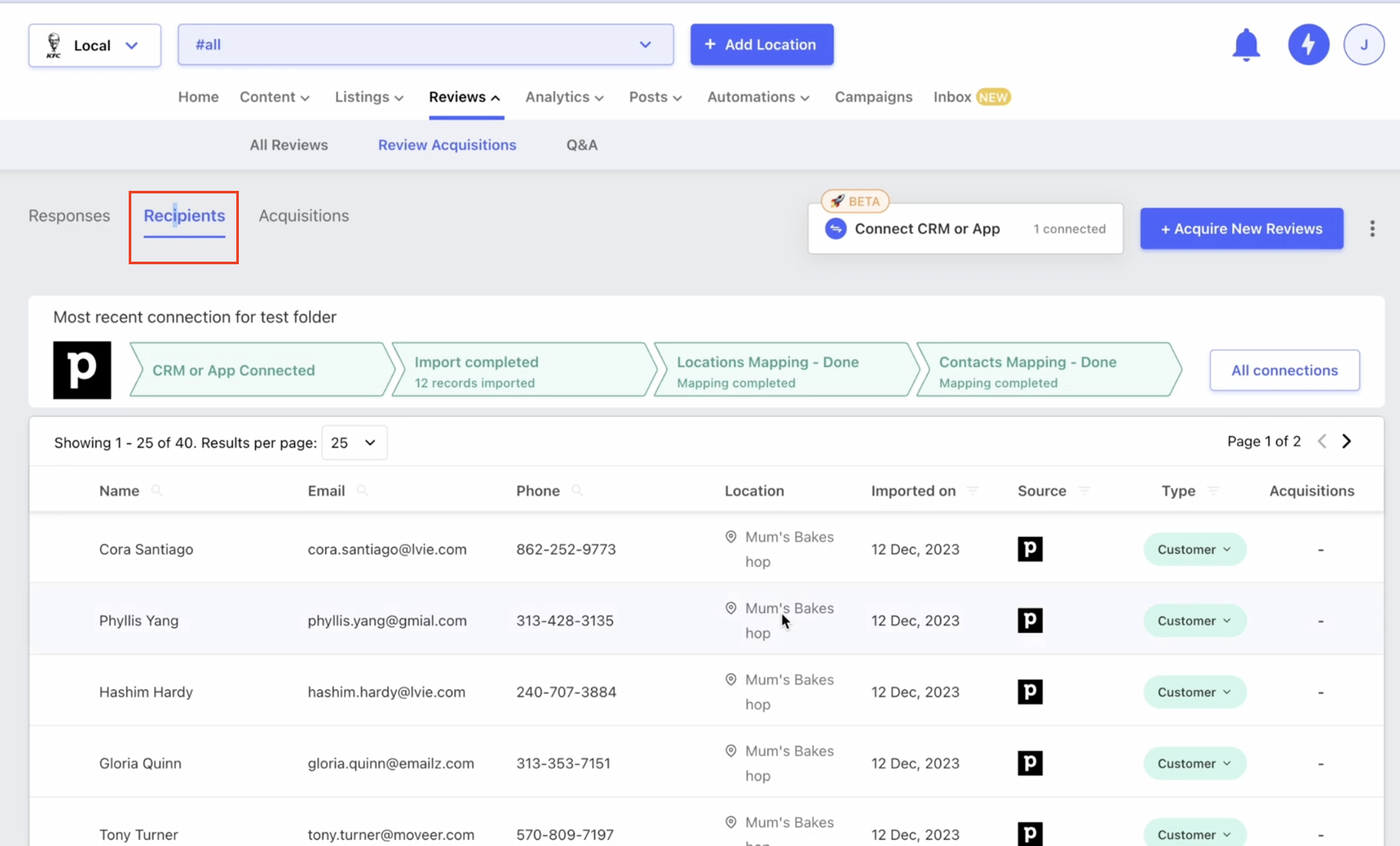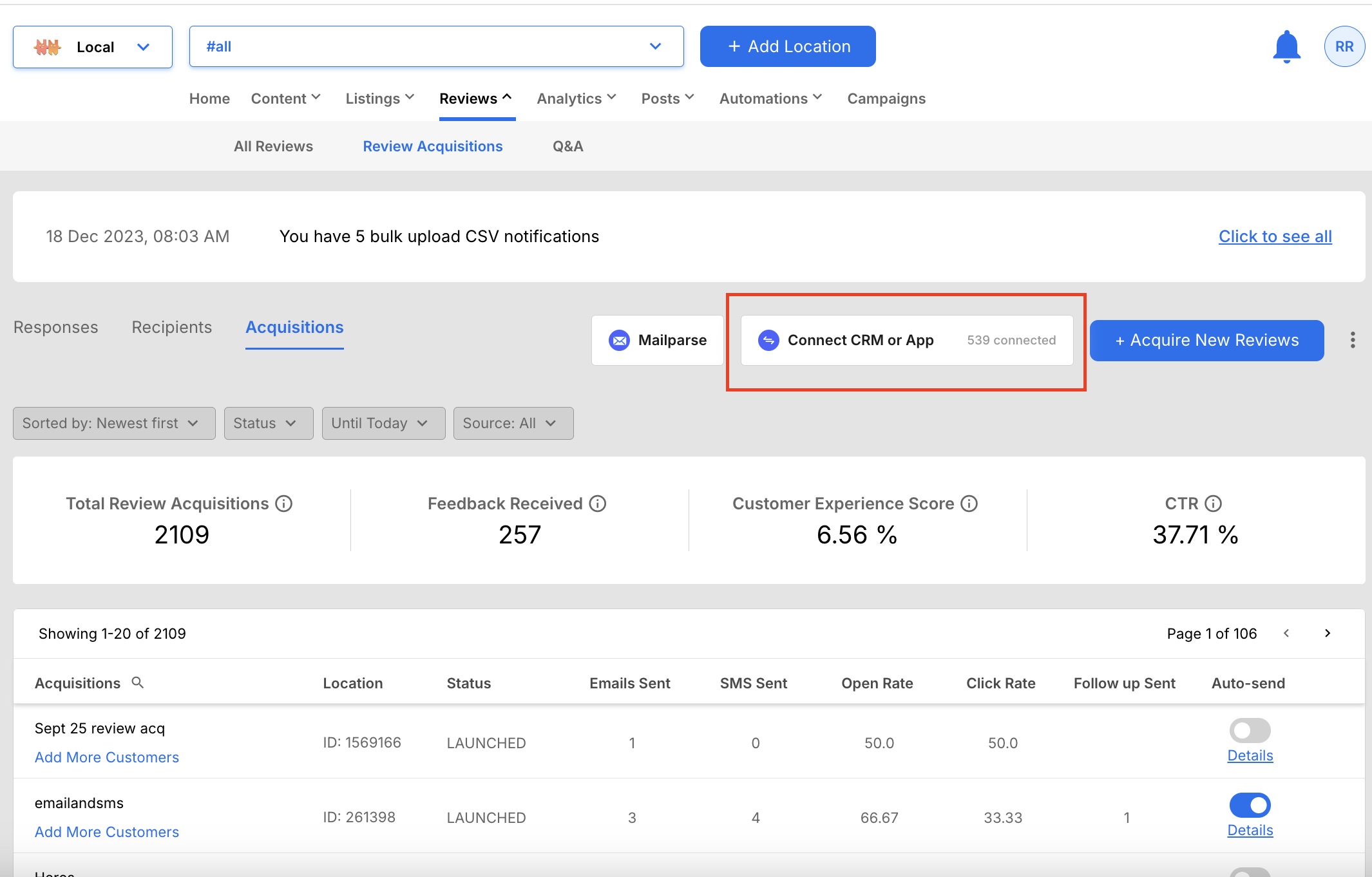Select the ‘Auto add new subscribers from CRM to Synup’ checkbox to automatically add new customers and automate the review collection process.
